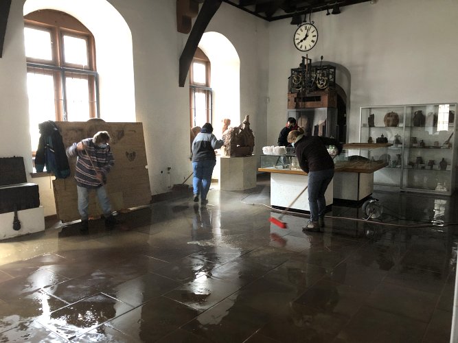 Aufräumen nach dem Hochwasser im Heuson-Museum 2021