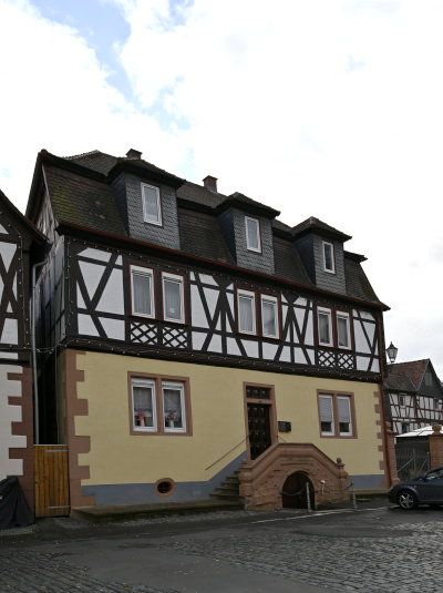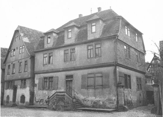 Ein sehr stattliches Haus, im Erdgeschoss massiv, Mauerstärke ca. 60 cm. Aus Sandstein, im Obergeschoss nach dem Schlossplatz zu, ein imponierender Holzgiebel, leider verputzt, doch von innen erkennbar.